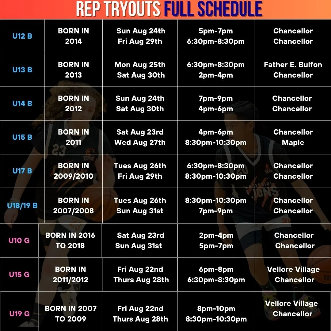 ๐ข The full Rep Team Tryout schedule is here! ๐ Itโs time to lock in, bring your best, and show us what youโve got for the 2025/26 season.From U10 all the way up to U19, this is your chance to compete, grow, and be part of something bigger.๐ Check out the full schedule in our latest post and make sure youโre registered.๐ฒ Link in bio to register now!Letโs get to work.#WLLions #RepBasketball #BasketballTryouts #YouthBasketball #TorontoBasketball #FutureStars #TrainHardPlayHard #RepSeasonStartsNow #BasketballLife Guest UserAugust 25, 2025 Facebook0 Twitter 0 Likes